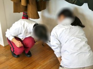 中学2年生の教室を覗くと、机・椅子、ホワイトボードを丁寧に磨き上げている生徒たちの姿がありました。